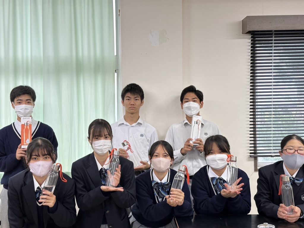 沖永良部高校の生徒11名のみなさんと、校内で排出されるペットボトルの削減に取り組みました。マイボトルにお水を入れるだけではなく、南国沖永良部島ならではのフルーツを使った綺麗でかわいいフレーバーウォーターにすることで、自分も楽しみながら、周りの生徒にも興味を持ってもらおうという取り組みです。シークァーサーや島みかん、ドラゴンフルーツなど、様々なフルーツが実る沖永良部島。そんな自然環境を楽しみながらプラスチック削減に取り組みます。